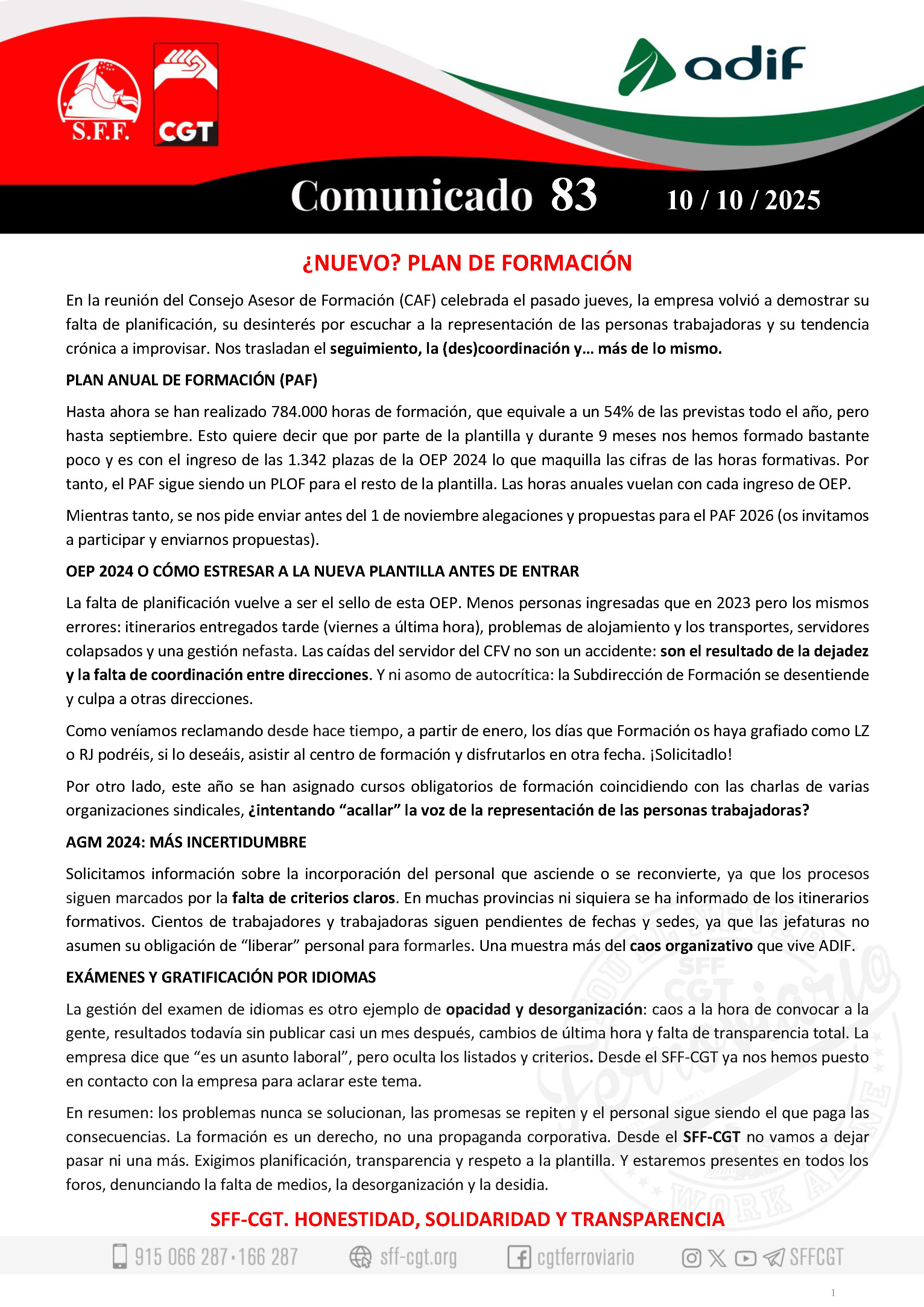 Tfnos: 915 066 285 / 915 066 287 - Fax: 915 066 314 - e-mail: sff-cgt@cgt.es