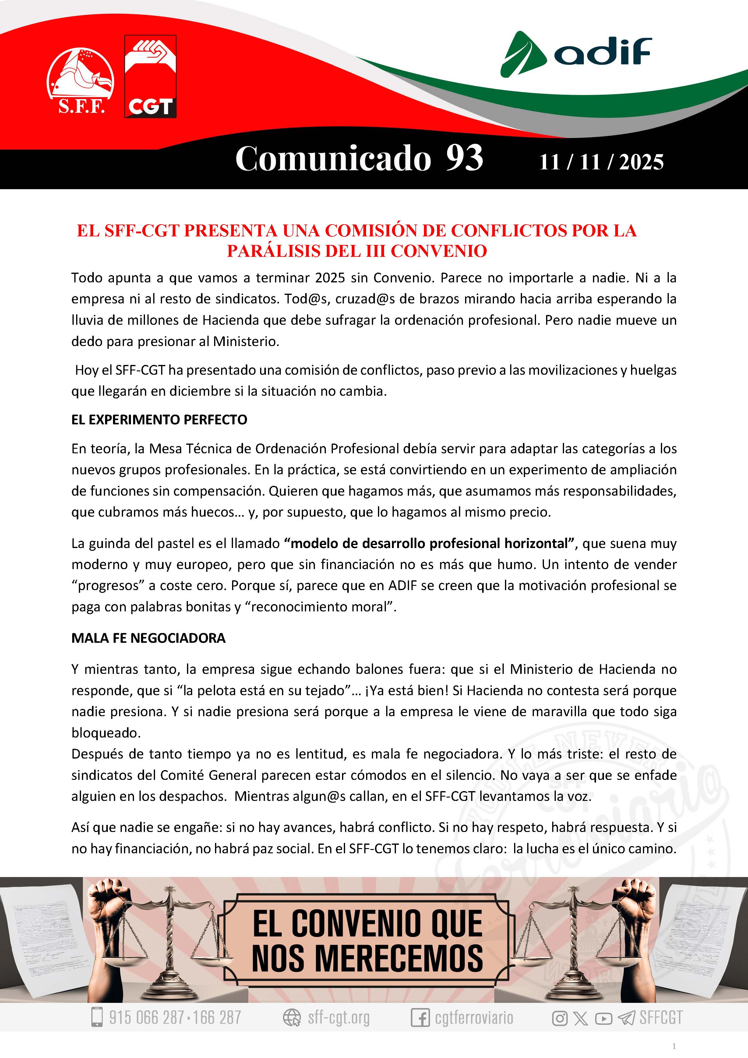 EL SFF-CGT PRESENTA UNA COMISIÓN DE CONFLICTOS POR LA PARÁLISIS DEL III CONVENIO EL SFF-CGT PRESENTA UNA COMISIÓN DE CONFLICTOS POR LA