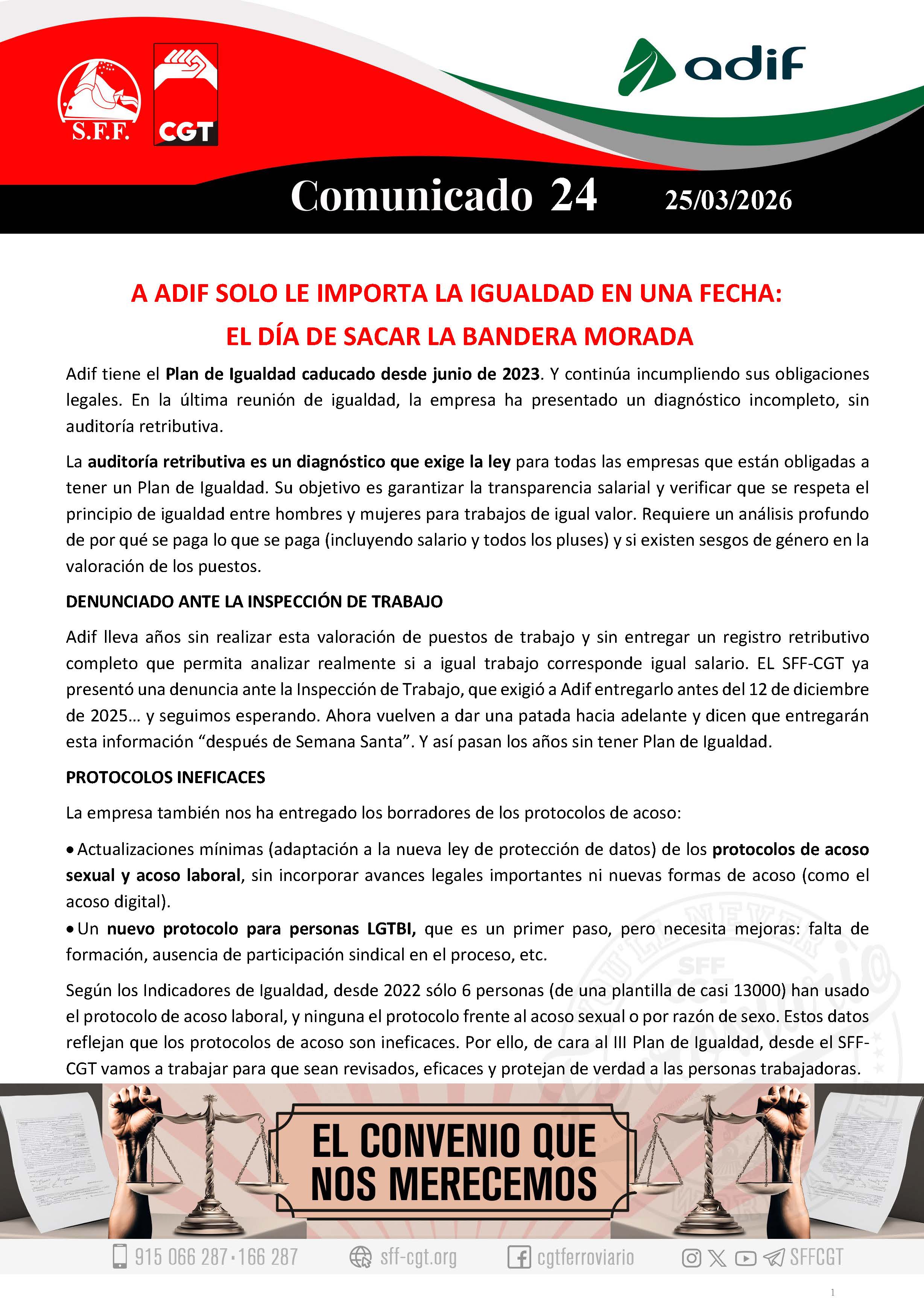 Con este panorama, desde el SFF-CGT hemos vuelto a insistir en lo mismo que llevamos reclamando desde el inicio de esta negociación: queremos conocer cuál es la financiación disponible para llevar a cabo la Ordenación Profesional. Hemos solicitado el informe de la Secretaría de Estado de Presupuestos y Gastos que, según la Ley de Presupuestos Generales de 2023, debe autorizar la masa salarial disponible para negociar. La empresa se niega a facilitarlo. También queremos saber si el escenario económico ha cambiado con la Guerra en Irán.