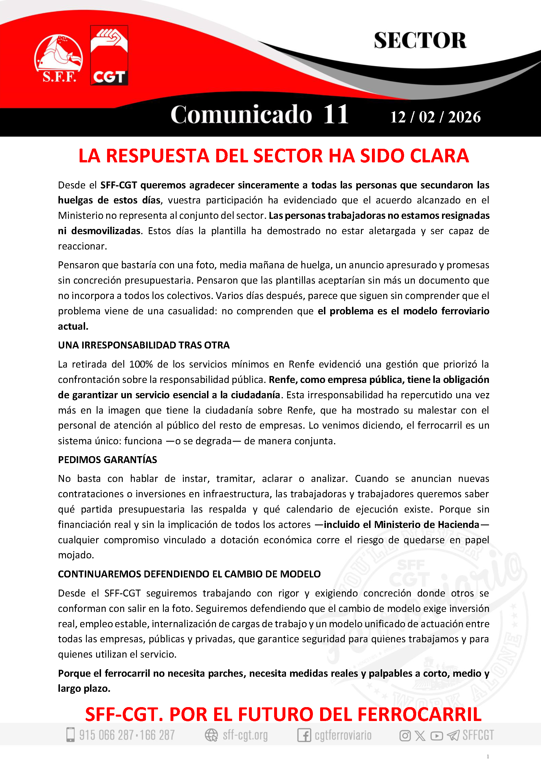 SECTOR 09/02/2026 | 10 SFF-CGT MANTIENE LA HUELGA EN EL SECTOR | SECTOR 08/02/2026 | 9 UNA HUELGA PARA SALVAR EL FERROCARRIL |