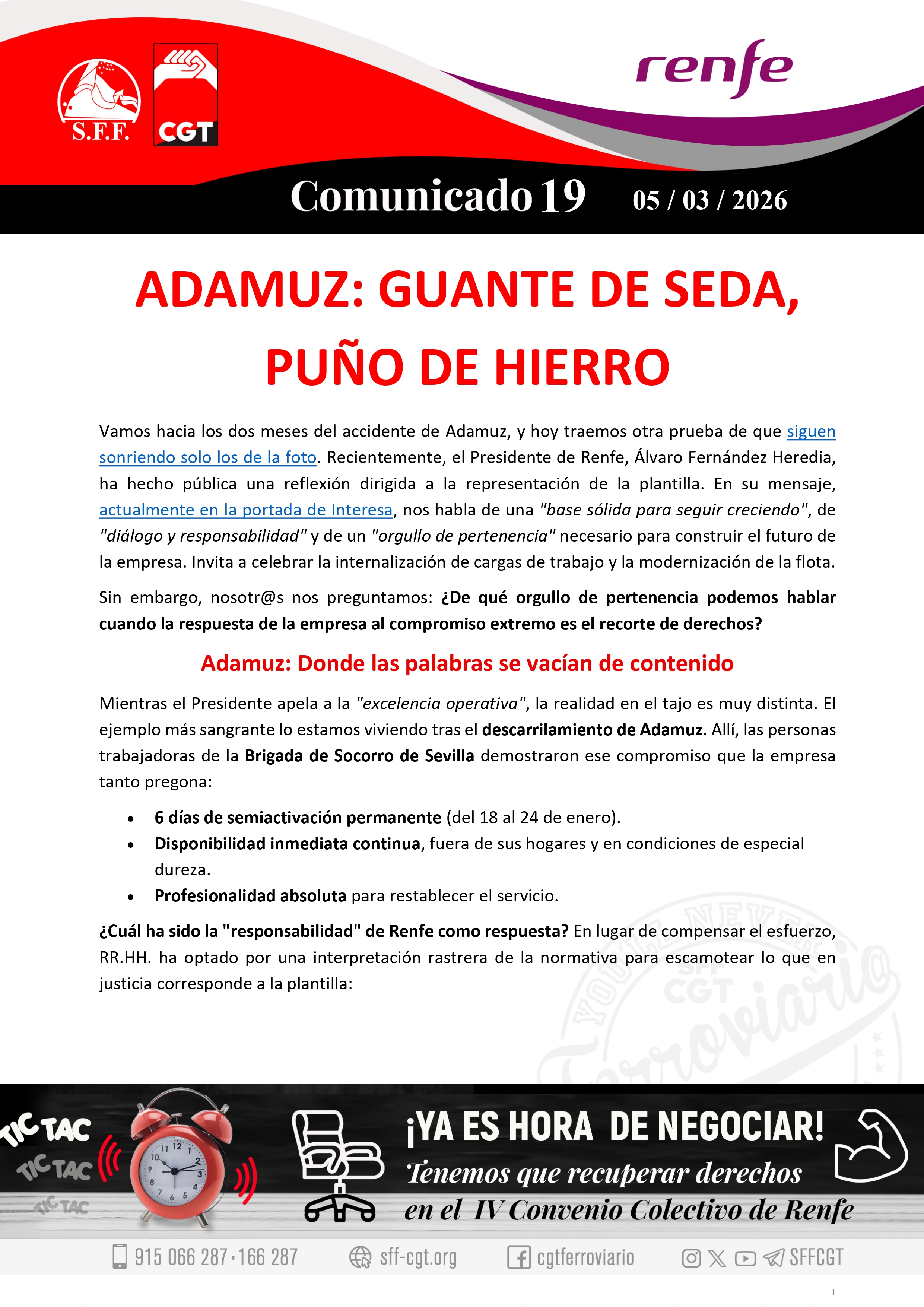 SECTOR 05/03/2026 | 18 ESTE 8M NO CELEBRAMOS COMPROMISOS VACÍOS | RENFE 04/03/2026 | 17 ¿Y LA SUBIDA SALARIAL? |