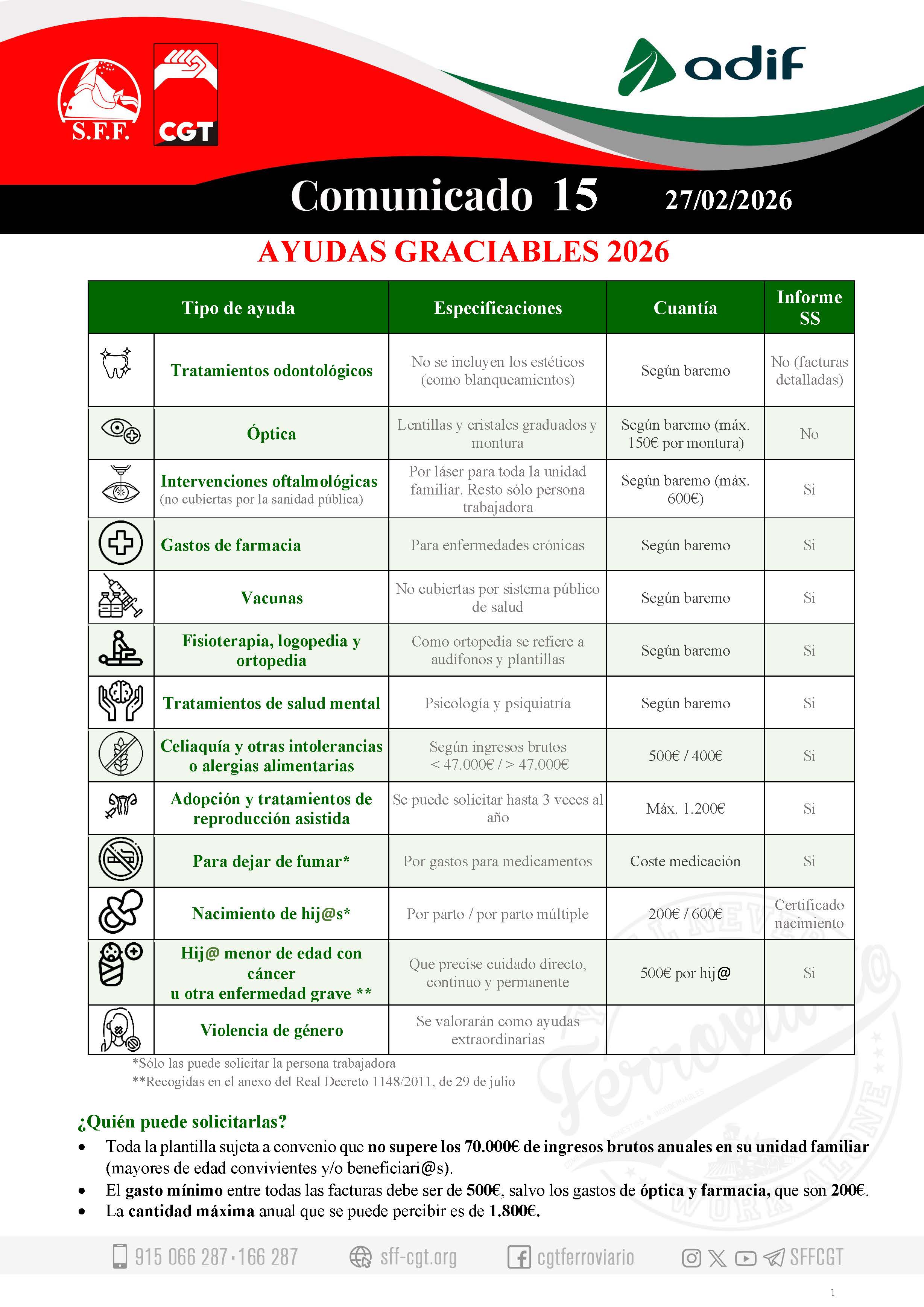 • Modelo oficial cumplimentado (bit.ly/AyudasGraciablesAdif ) y última nómina.