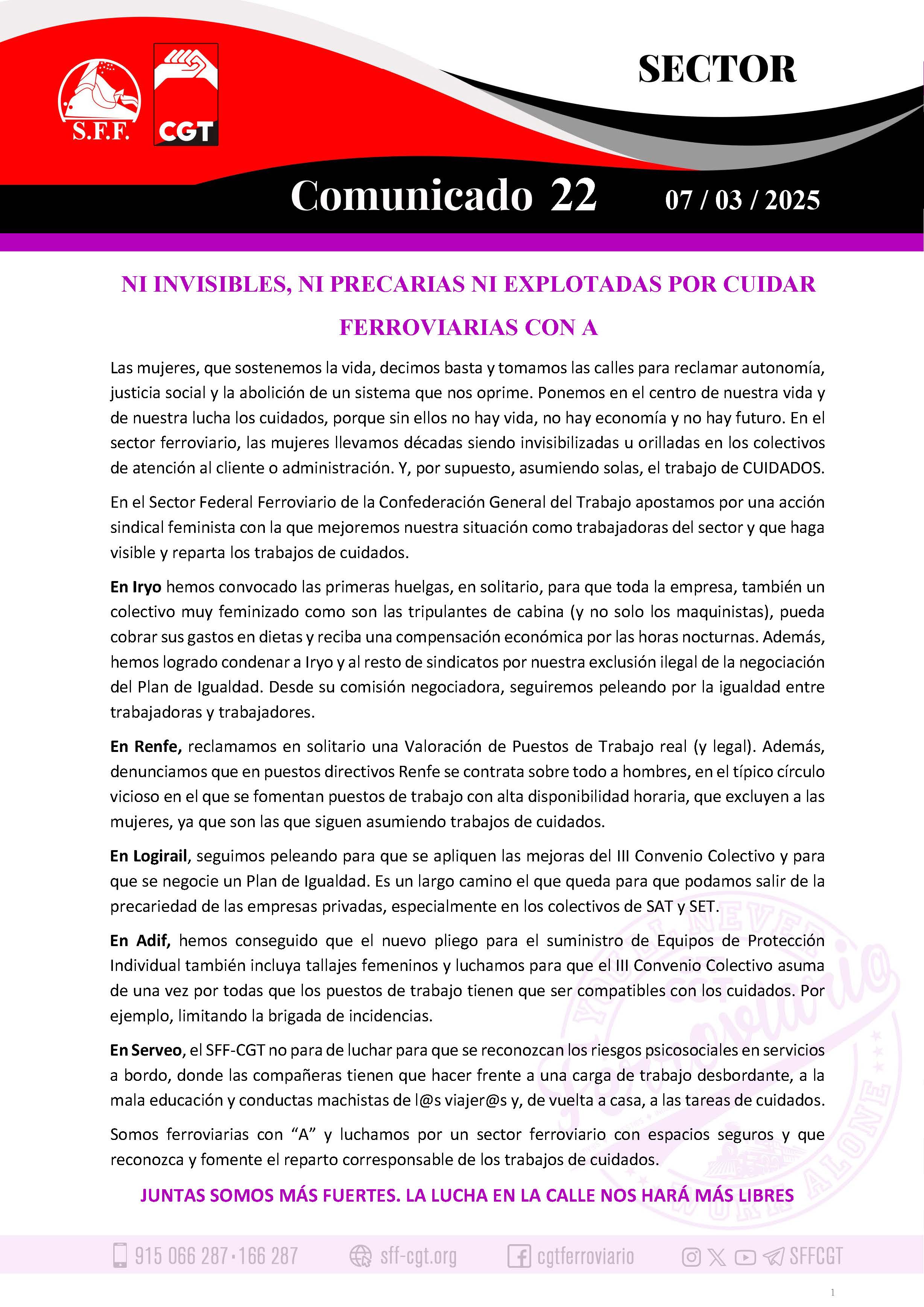 SECTOR 8M. NI INVISIBLES, NI PRECARIAS NI EXPLOTADAS POR CUIDAR: FERROVIARIAS CON A | 22 2025-03-07 |